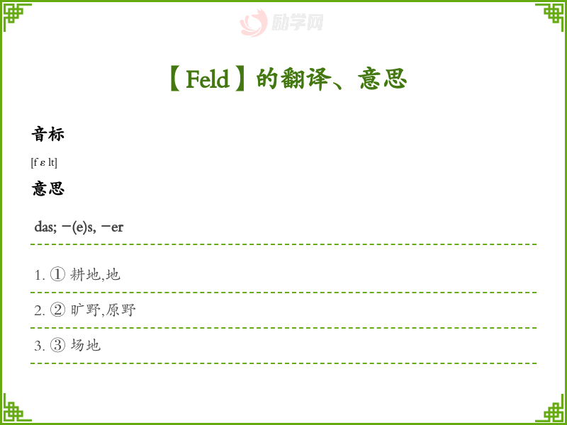 Feld德语的中文翻译、意思