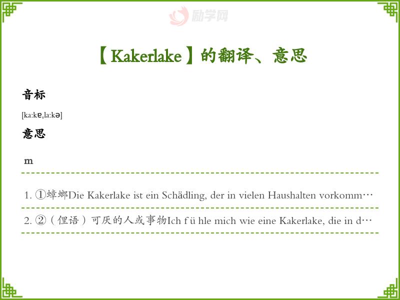 ②(俚语)可厌的人或事物Ich fühle mich wie eine Kakerlake, die in den Abfall gefallen ist.我感觉自己就像一只掉进垃圾里的蟑螂。