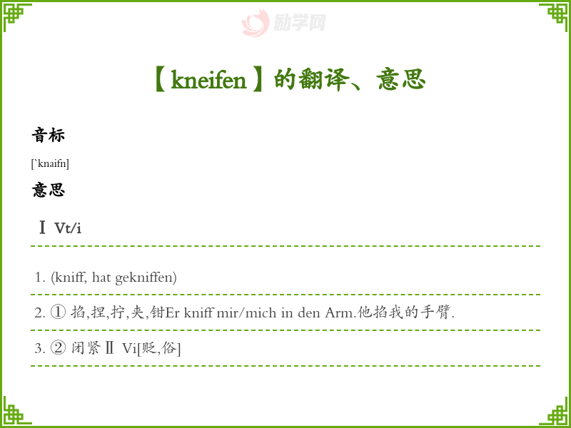 kneifen德语的中文翻译、意思