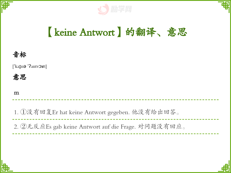 ②无反应Es gab keine Antwort auf die Frage. 对问题没有回应。