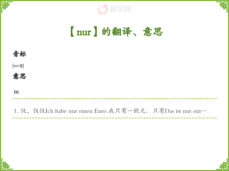 nur德语的中文翻译、意思