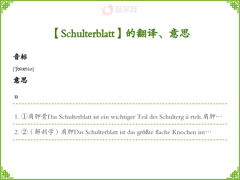 Schulterblatt德语的中文翻译、意思
