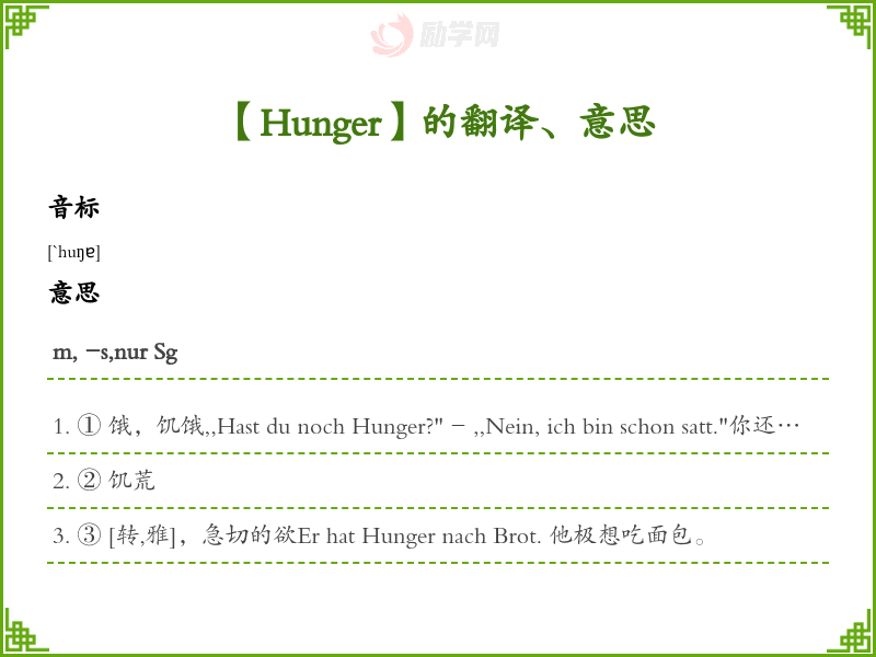 Hunger德语的中文翻译、意思