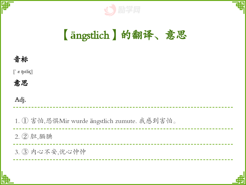 ängstlich德语的中文翻译、意思