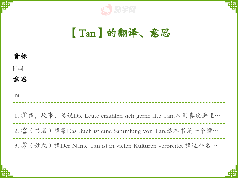 Tan德语的中文翻译、意思