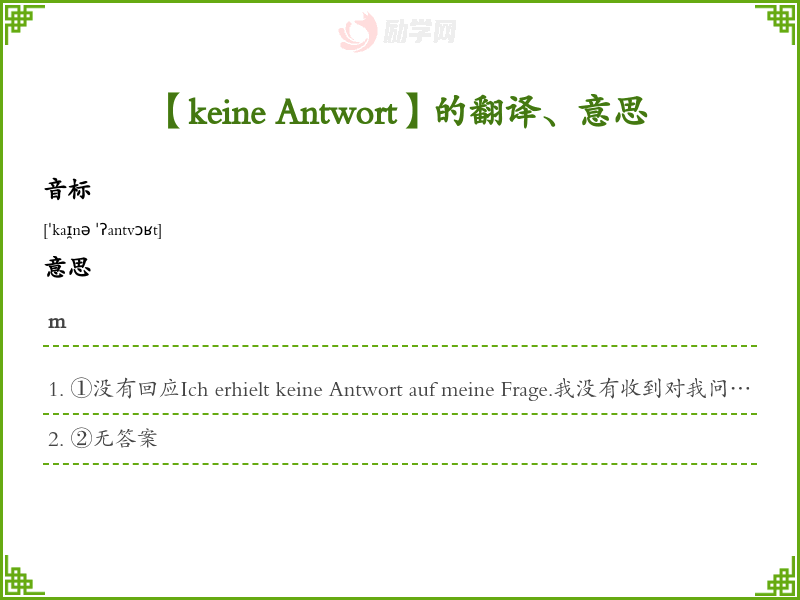 【keine Antwort】是什么意思、字义解释