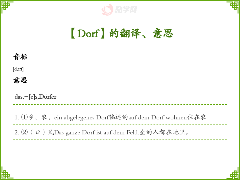 Dorf德语的中文翻译、意思