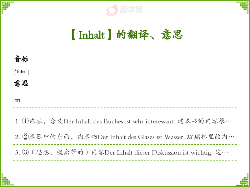 Inhalt德语的中文翻译、意思