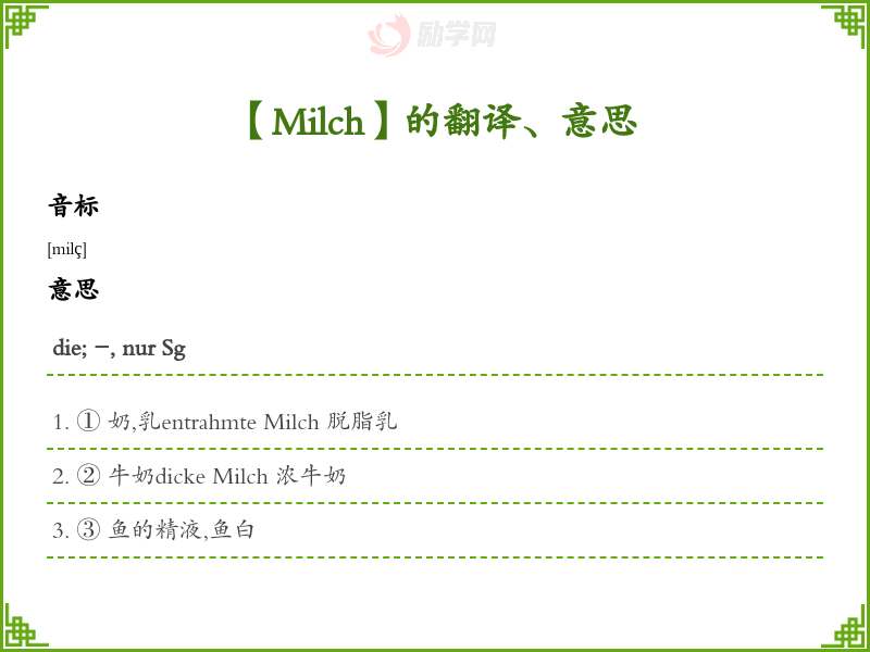 Milch德语的中文翻译、意思
