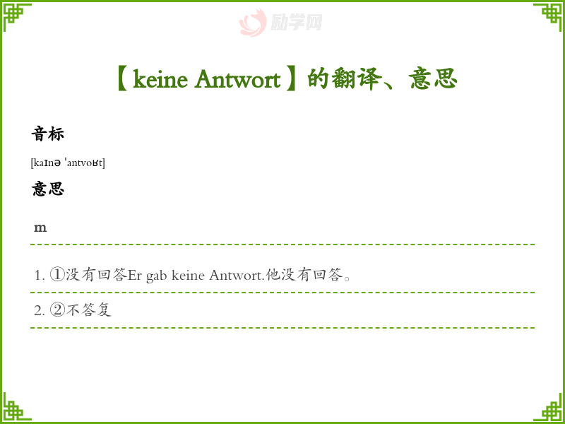 keine Antwort德语的中文翻译、意思