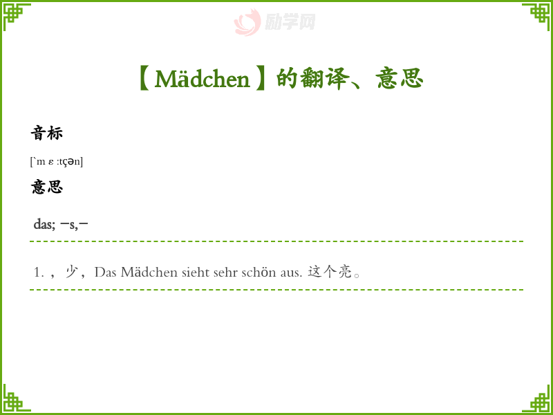 ,少,Das Mädchen sieht sehr schön aus. 这个亮。