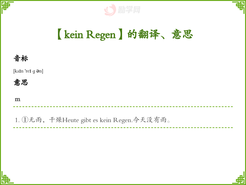 【kein Regen】是什么意思、字义解释