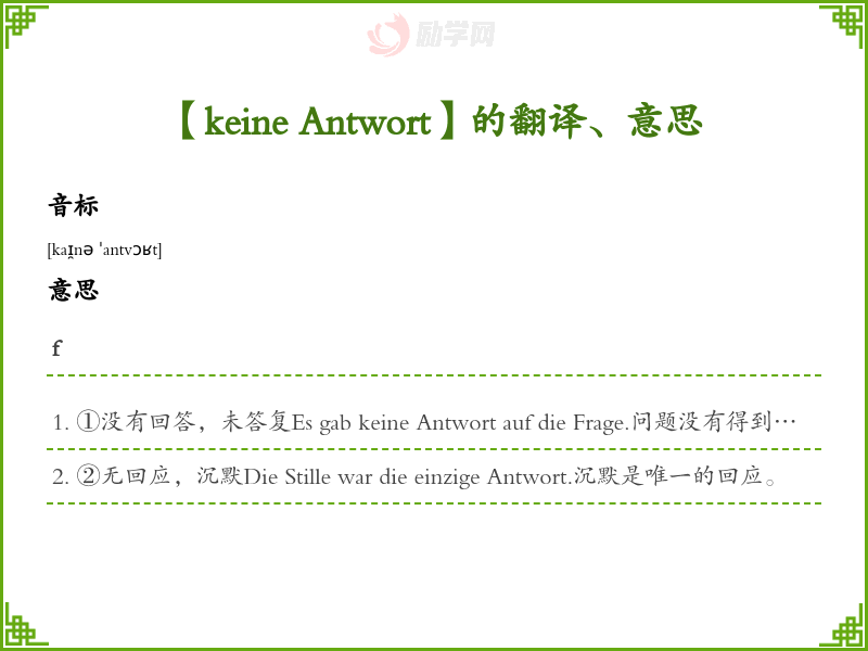 【keine Antwort】是什么意思、字义解释