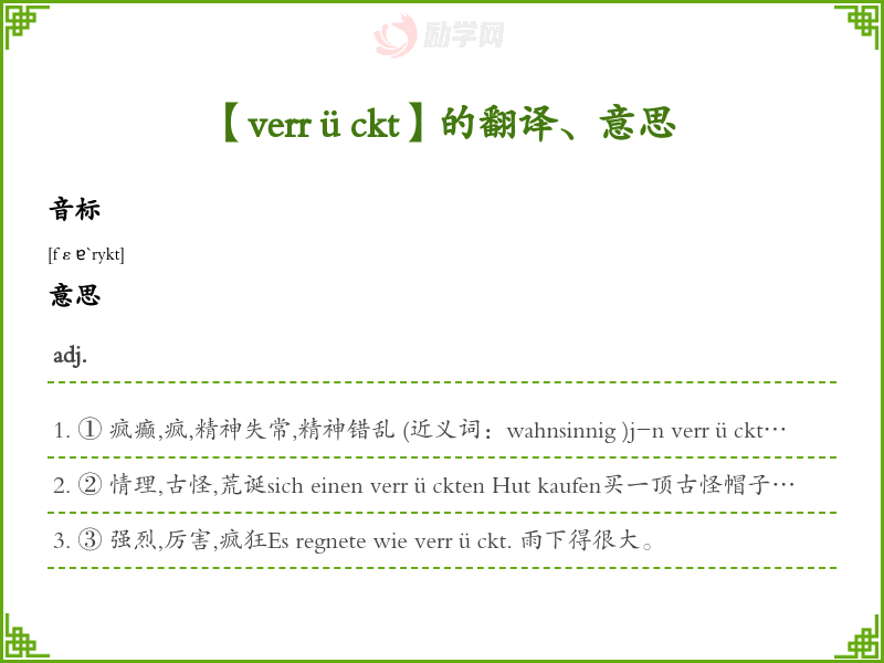 verrückt德语的中文翻译、意思