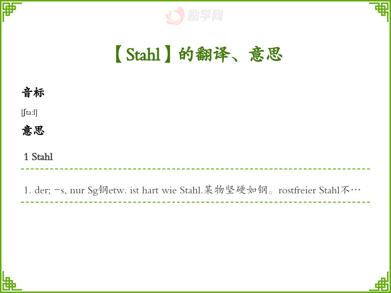 Stahl德语的中文翻译、意思