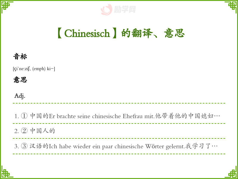Chinesisch德语的中文翻译、意思