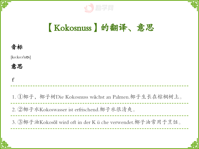 Kokosnuss德语的中文翻译、意思