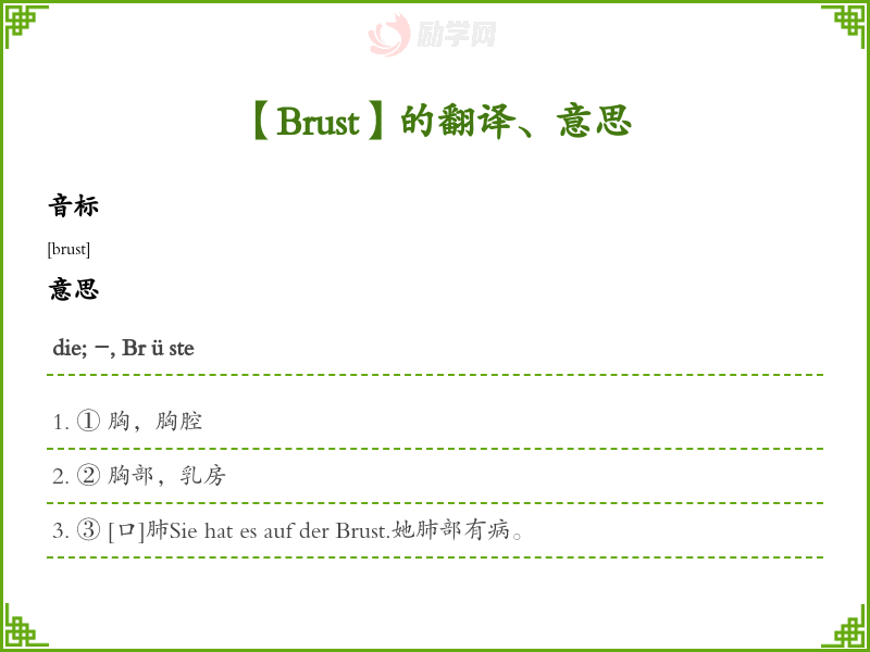 Brust德语的中文翻译、意思