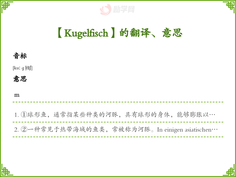 Kugelfisch德语的中文翻译、意思
