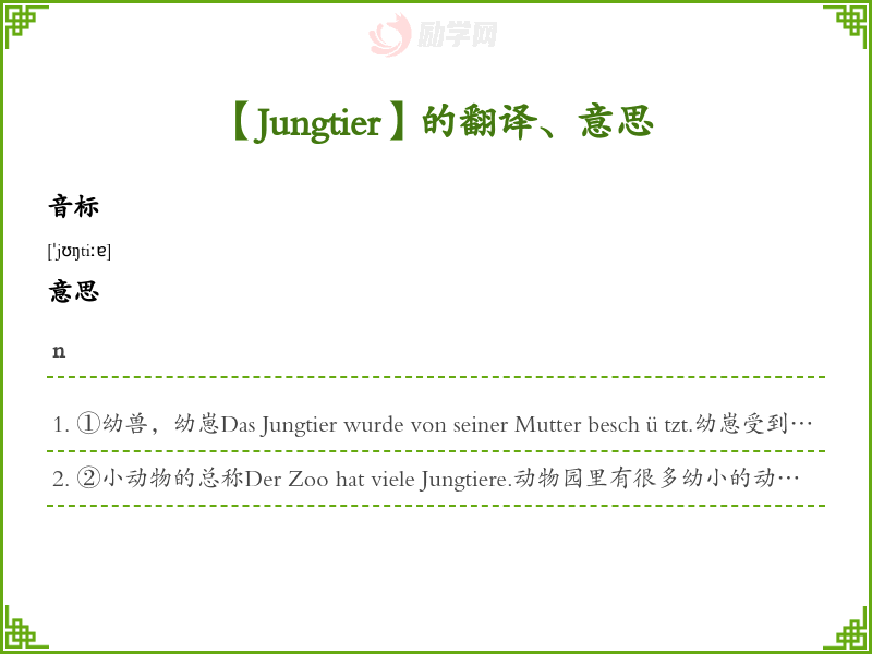 Jungtier德语的中文翻译、意思
