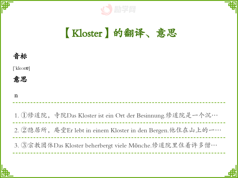 Kloster德语的中文翻译、意思