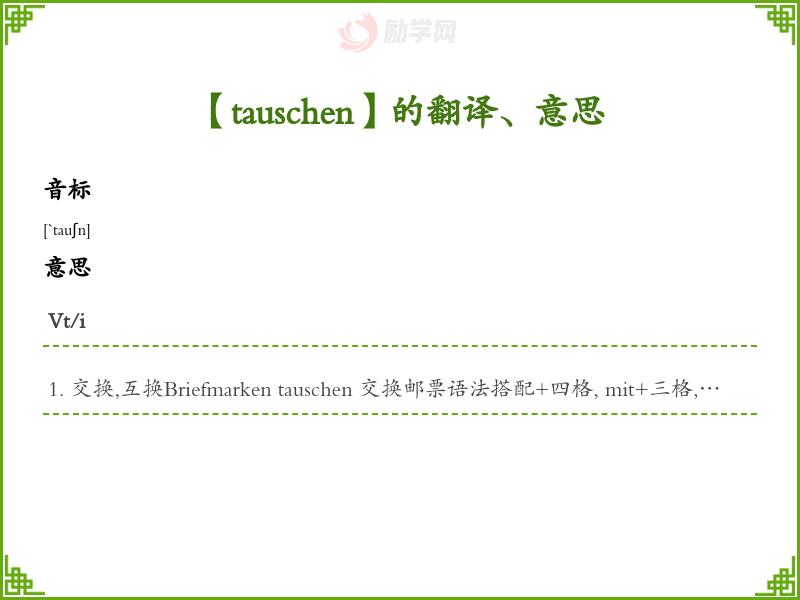 交换,互换Briefmarken tauschen 交换邮票语法搭配+四格, mit+三格, gegen+四格, für+四格
