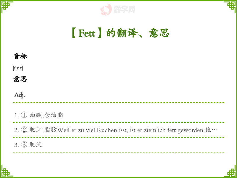 Fett德语的中文翻译、意思