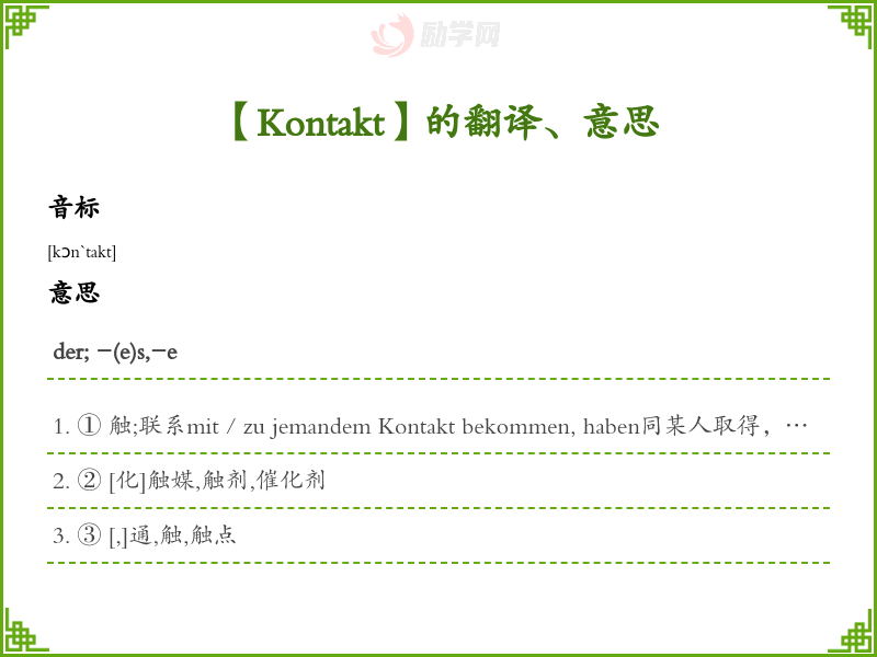 Kontakt德语的中文翻译、意思