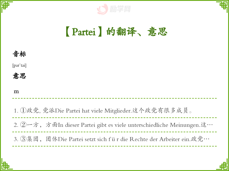 Partei德语的中文翻译、意思