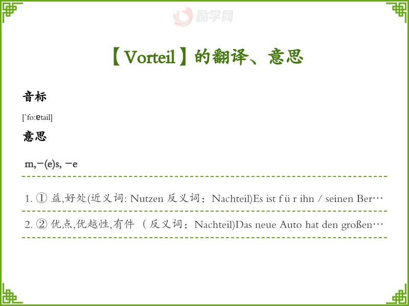 【Vorteil】是什么意思、字义解释