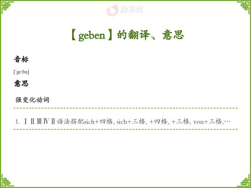 Ⅱ语法搭配sich+四格, sich+三格, +四格, +三格, von+三格, für+四格, an+四格, +als
