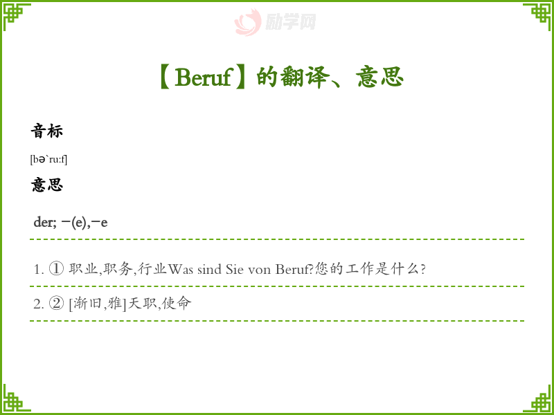 Beruf德语的中文翻译、意思