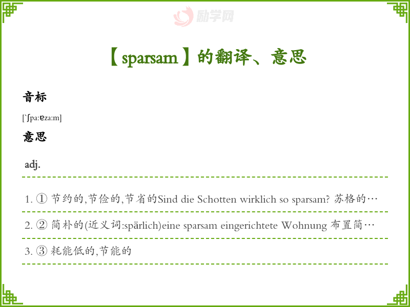 sparsam德语的中文翻译、意思