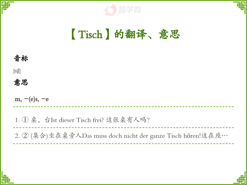 Tisch德语的中文翻译、意思