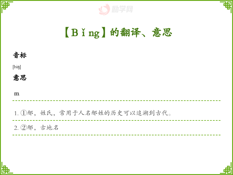 ①邴,姓氏,常用于人名邴姓的历史可以追溯到古代。