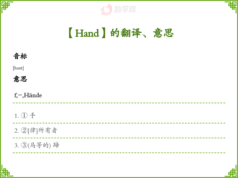 Hand德语的中文翻译、意思