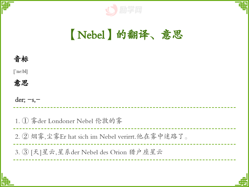 Nebel德语的中文翻译、意思