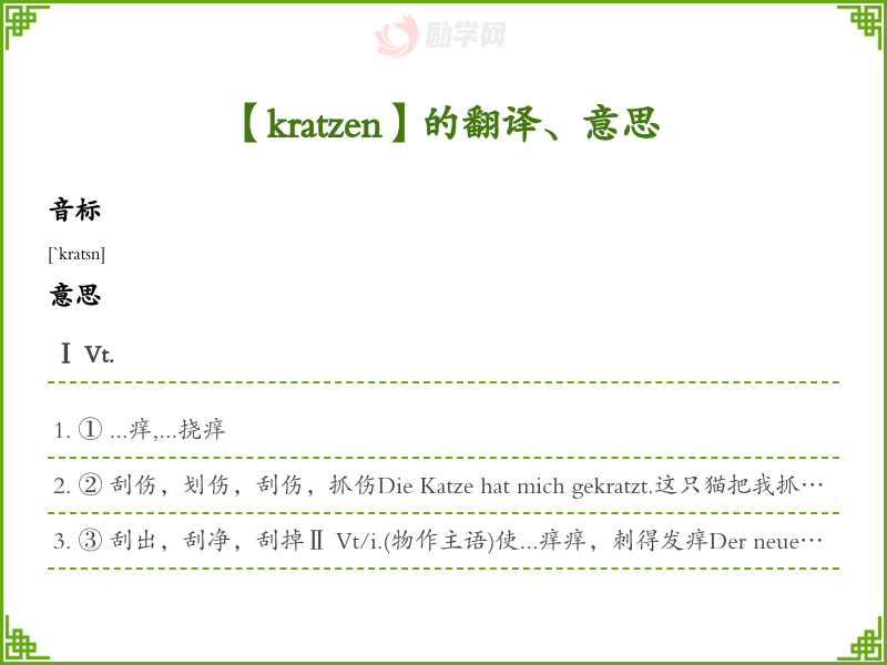 kratzen德语的中文翻译、意思
