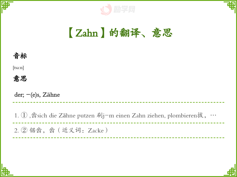 Zahn德语的中文翻译、意思