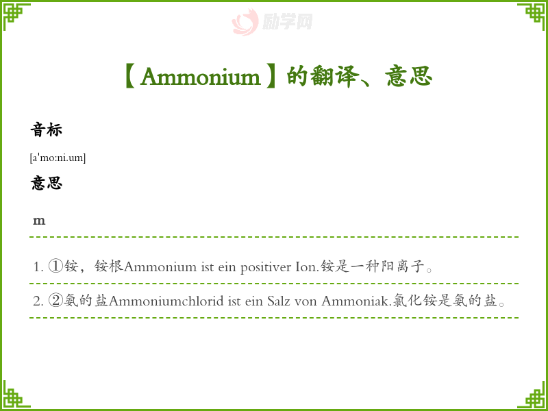 【Ammonium】是什么意思、字义解释
