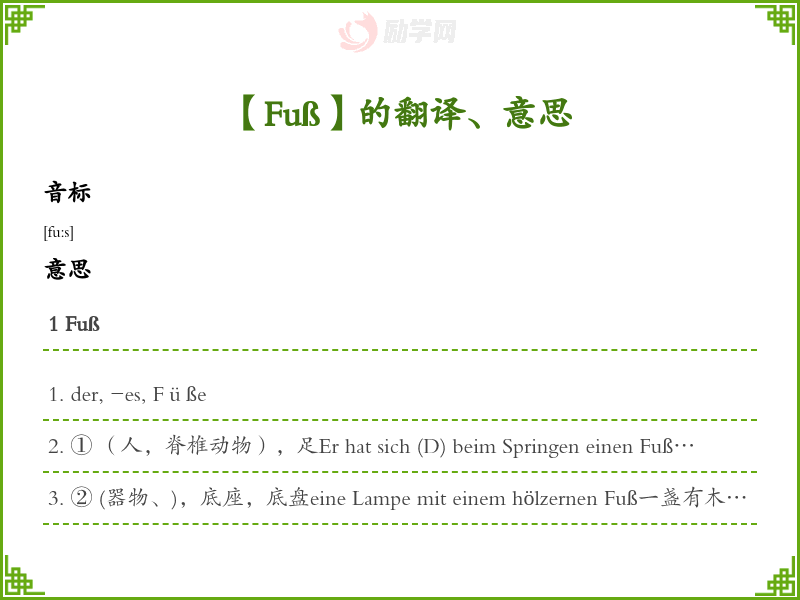 Fuß德语的中文翻译、意思