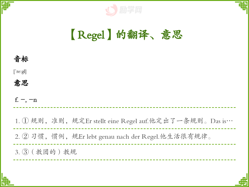 Regel德语的中文翻译、意思