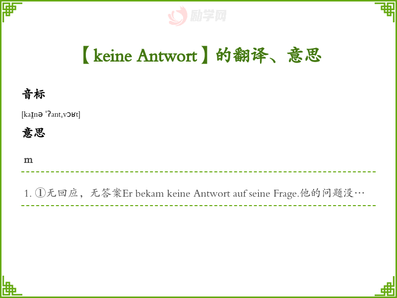 【keine Antwort】是什么意思、字义解释