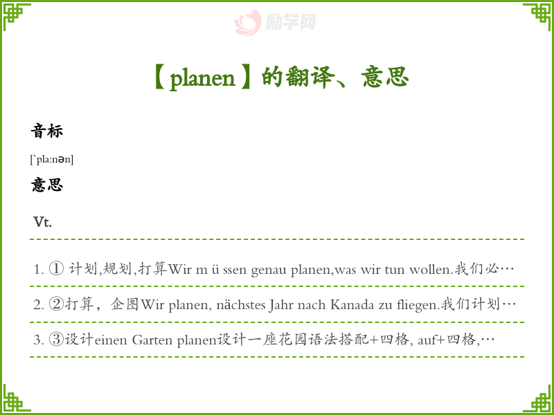 ③设计einen Garten planen设计一座花园语法搭配+四格, auf+四格, für+四格, +als Fr helper cop yright