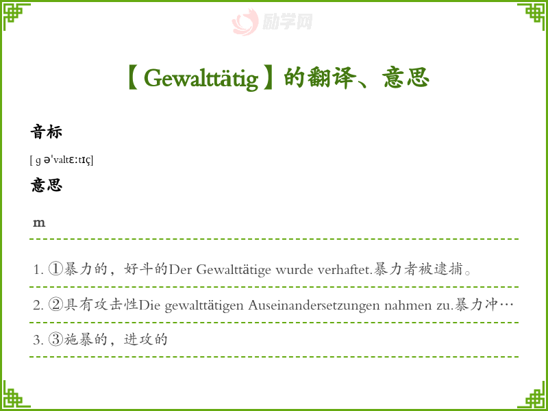 Gewalttätig德语的中文翻译、意思