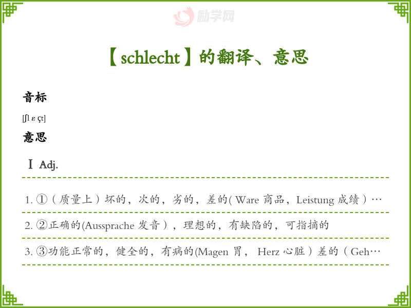 【schlecht】是什么意思、字义解释