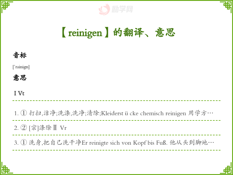 reinigen德语的中文翻译、意思