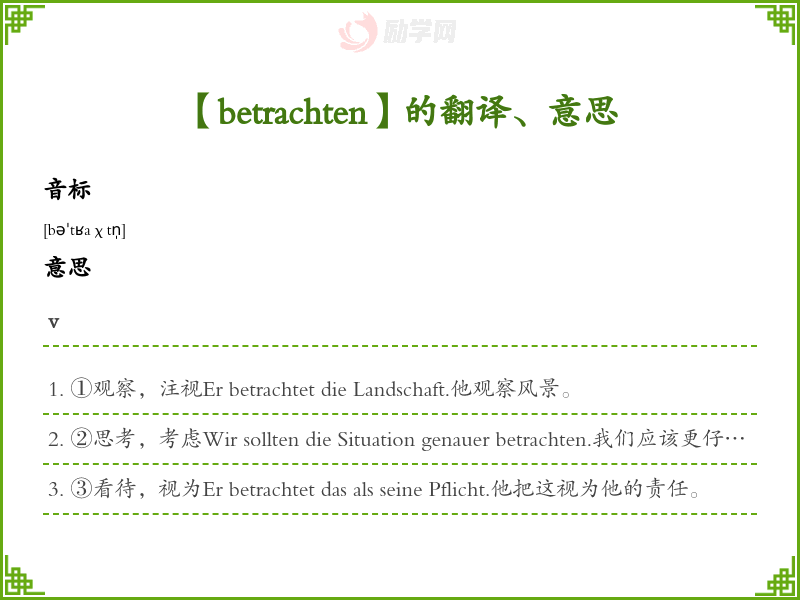 betrachten德语的中文翻译、意思