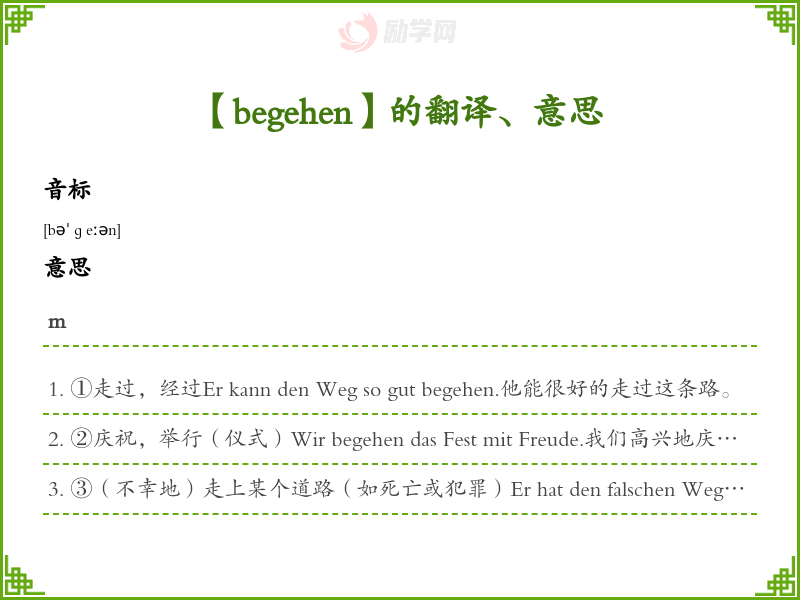 begehen德语的中文翻译、意思