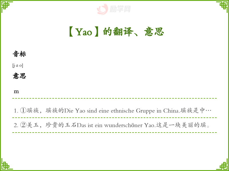 Yao德语的中文翻译、意思